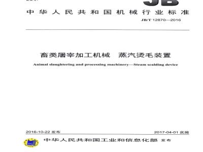 JB/T 12870-2016 畜类屠宰加工机械 蒸汽烫毛装置