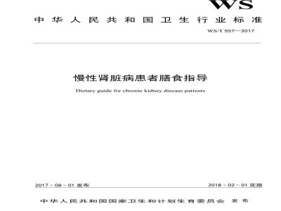 WS/T 557-2017 慢性肾脏病患者膳食指导