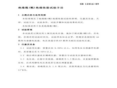 GB 12016-1989 绝缘鞋(靴)绝缘性能试验方法