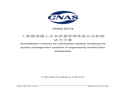 CNAS-SC15:2018 工程建设施工企业质量管理体系认证机构认可方案