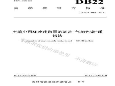 DB22/T 2466-2016 土壤中丙环唑残留量的测定 气相色谱-质谱法