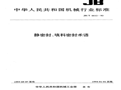 本标准规定了静密封和填料密封的术语及定义。 本标准适用于静密封和填料密封。 JB/T 6612-1993 静密封、填料密封 术语 JB/T6612-1993 标准下载解压密码:www.bzxz.net