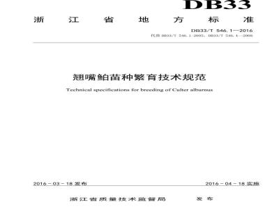 DB33/T 546.1-2016 翘嘴鲌苗种繁育技术规范