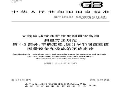 GB/T 6113.402-2018 无线电骚扰和抗扰度测量设备和测量方法规范 第4-2部分:不确定度、统计学和限值建模测量设备和设施的不确定度