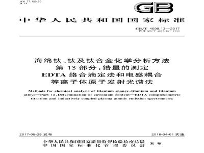 GB/T 4698.13-2017 海绵钛、钛及钛合金化学分析方法 第 13 部分:锆量的测定 EDTA 络合滴定法和电感耦合等离子体原子发射光谱法
