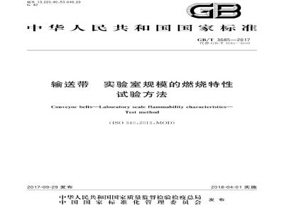 GB/T 3685-2017 输送带 实验室规模的燃烧特性 试验方法