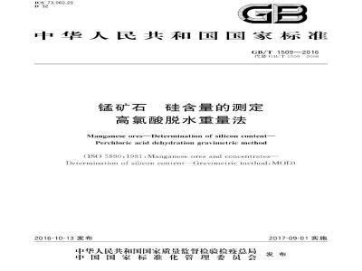 GB/T 1509-2016 锰矿石 硅含量的测定基本信息 高氯酸脱水重量法