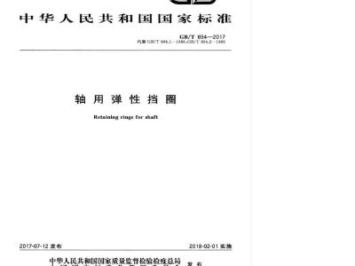 A型》和GB/T894.2-1986轴用弹性挡圈本标准代替GB/T894.1—1986轴用弹性挡圈型》,与GB/T894.1-1986和GB/T894.2—1986相比,主要技术变化如下:GB/T894.1—1986和GB/T894.21986合并为-个标准,并修改标准名称:B