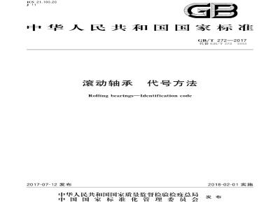 将JB/T2974《滚动轴承代号方法的补充规定》的有关内容并人;修改并增加了部分引用标准(见第2章,1993年版的第2章);增加了“术语和定义”一章(见第3章);增加了“符号”一章(见第4章);增加了符合GB/T273.1的圆锥滚子轴承和长弧面滚子轴承(圆环轴承)的类型代号(见表2);增加了部分尺寸系列(见表4);增加了部分前置代号(见表7);增加了部分后置代号(见表9~表17);修改0组公差代号和0组游隙代号(见表13和表14,1993年版的表12和表13);增加了带附件轴承的代号(见表18);增加了轴承变形结构代号(见附录B):增加了不编制保持架后置代号的轴承(见附录C);增加了非标准轴承代号编制方法(见附录D)增加了专用轴承代号(见附录E):删除了附录“新旧标准代号对照”(见1993年版的附录B)。本标准由中国机械工业联合会提出本标准由全国滚动轴承标准化技术委员会(SAC/TC98)归口。本标准起草单位:洛阳轴承研究所有限公司、苏州轴承厂股份有限公司、慈兴集团有限公司、哈尔滨轴承集团公司、福建省永安轴承有限责任公司。本标准主要起草人:郭宝霞、张小玲、赵坤、翁世席、钱卫华、叶健果。本标准所代替标准的历次版本发布情况为:GB272—1964.GB272—1988.GB/T272-1993