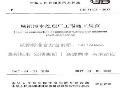 作房城乡建设部关于发布国家标准《城镇污水处理厂工程施规范》的公告现批准《城镇污水处理厂程施工规范》为国家标准,编号为GB512212017自2017年7月1日起实施。共中,第3,0.11、5.4.8、6.1.4条为据制性条文,必须严格热行本规范山我部标准定额研究所组织中回计划出版社出版发行,