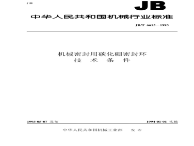 本标准规定了机械密封用碳化硼密封环的技术要求、试验方法、检验规则和包装、运输、贮存等内容。 本标准适用于热压碳化硼密封环。工作条件为压力不大于6.3MPa,温度在-20~ 200℃的水、油类、有机溶剂、强酸强碱及带有固体颗粒的介质。 JB/T 6615-1993 机械密封用碳化硼密封环 技术条件 JB/T6615-1993 标准下载解压密码:www.bzxz.net