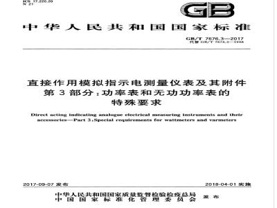 GB/T7676的本部分规定了直接作用模拟指示电测量功率表和无功功率表的术语定义,分类、分级、通用技术要求、信息、标志和符号、包装和贮存以及检验规则等。本部分适用于直接作用模拟指示的功率表和无功功率表。本部分也适用于当附件与仪表连用并在组合状态下进行调整时的仪表与附件的组合。本部分也适用于其分度线与输人电量的关系为已知,但不直接对应的直接作用指示功率表和无功功率表。