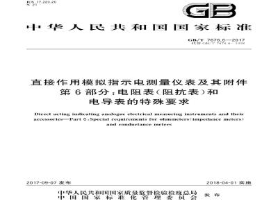 中文名称:直接作用模拟指示电测量仪表及其附件 第6部分:电阻表(阻抗表)和电导表的特殊要求