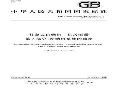 GB/T 8190.7-2018 往复式内燃机 排放测量 第7部分:发动机系族的确定