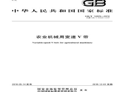 本标准代替GB/T14829—2007(农业机械用变速V带》。与GB/T14829—2007相比,除编辑性修改外主要技术变化如下: