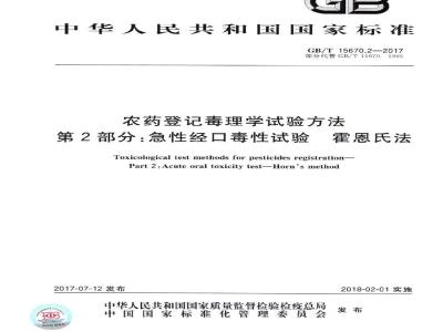 Toxicological test methods for pesticides registration-Part 2:Acute oral toxicity test-Horn's method2017-07-12发布
