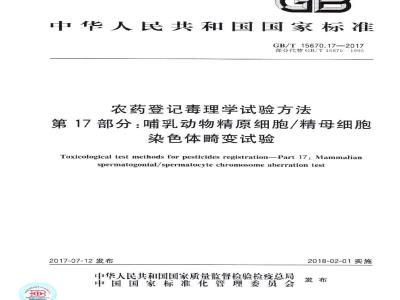 中文名称:农药登记毒理学试验方法 第17部分:哺乳动物精原细胞 精母细胞染色体畸变试验
