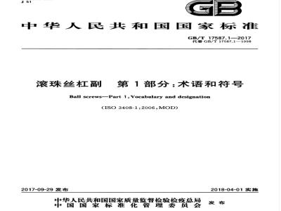 GB/T17587《滚珠丝杠副》分为以下5个部分:第1部分:术语和符号;