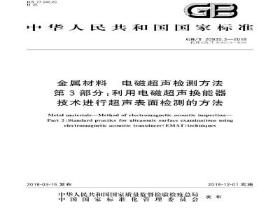 GB/T 20935.3-2018 金属材料 电磁超声检测方法 第3部分:利用电磁超声换能器技术进行超声表面检测的方法