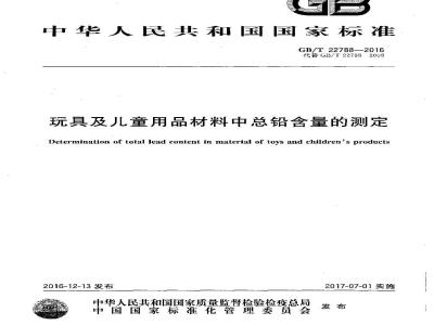 本标摊于2008年12片首次发布。玩真及儿童用品材料中总铅含量的测定GB/T 22788--2016