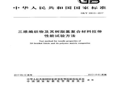 GB/T 33613-2017 三维编织物及其树脂基复合材料拉伸性能试验方法