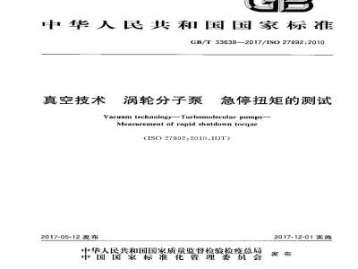 GB/T 33638-2017 真空技术 涡轮分子泵 急停扭矩的测试