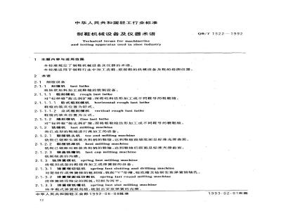 对需制作成弹簧檀的粗刻檀,铣削“V\形槽、檀底槽及钻削安装弹簧销轴孔。2. 1. 3. 2 弹簧檀圆弧切割机 spring Jast round milling machine将弹簧檀沿特定的圆弧,切割为两半。2.1.3.3弹簧檀铣槽机spring last slot milling machine将半截式弹簧粗刻植,铣制出安放弹簧的沟槽中华人民共和国轻工业部1992-06-08批准12