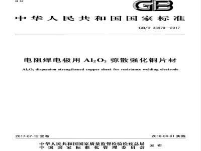电阻焊电极用Al.O3弥散强化铜片材GB/T33970—2017