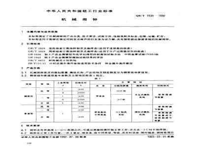 4.1闹钟在外界温度5~40℃范围之内,可通过调整快慢针能正常工作,并且在一5℃时不得停摆。4.2闹钟在正常工作位置,一次上紧走、闹发条,按不同类型、等级、其走时误差、闹时偏差、锁闹范围应中华人民共和国轻工业部1992-07-06批准218