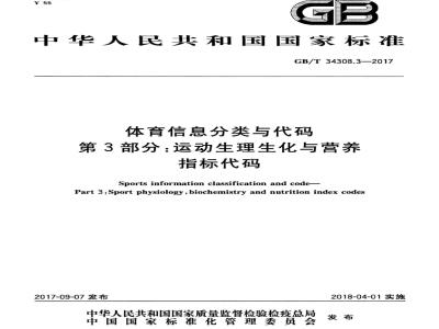 中文名称:体育信息分类与代码 第3部分:运动生理生化与营养指标代码