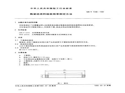 本标准规定了以测量试样上标线距离来确定陶瓷坏泥料线收缩率的方法和要求。本标谁适用于陶瓷用粘土、坏泥料干燥、烧成及线总收缩率的测定。2引用标准
