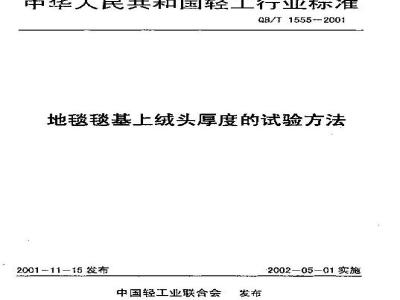3.在综果的计算和表水中补充9.2计算金部试样的绒头厚度平均值,本标准中中国轻工业联会察合业务部接出。本标准出全国地婴标准化中心归口,水标准由天津市地瑟研究所负或越草,本标准主要每草人更媒荣守恒主华期态玲。本标准实施之日起,惊轻工业萨发布的行业标准QBT1555一1992(地球球基上绒头厚追的试验方法。度止。