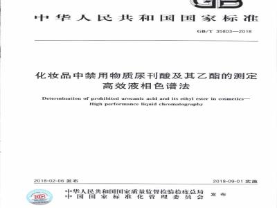 本标准规定了化妆品中禁用物质尿刊酸及其乙酯的高效液相色谱测定方法GB/T35803—2018