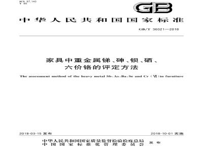 GB∕T 36021-2018 家具中重金属锑、砷、钡、硒、六价铬的评定方法