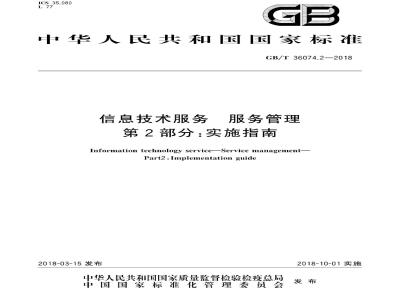 GB/T 36074.2-2018 信息技术服务 服务管理 第2部分:实施指南