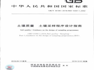 Soil qualityGuidance on the design of sampling programmes(ISO10381-1:2002,Soilquality—SamplingPart l:Guidance on the design of sampling programmes,IDT)2018-05-14发布