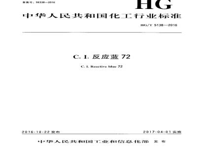 本标规定(.1.反应蓝72(活性翠蓝PF.C:R)产品的要求.采样。试验方法检验观则以及标志、标签、包装、运输和贮存。本标准适用于铜敲昔结构的1.反成选72的产品质量控制:2规范性引用文件