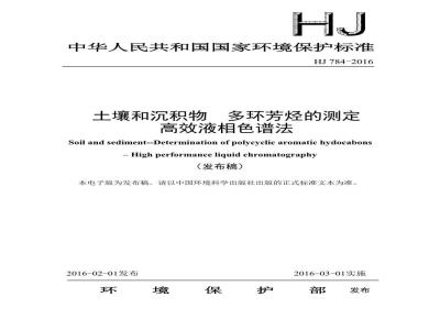为贯彻《中华人民共和国环境保护法》,保护环境,保障人体健康,规范土壤和沉积物中多环芳烃的测定方法,制定本标准。本标准规定了土壤和沉积物中多环芳烃类化合物的高效液相色谱法本标准为首次发布,