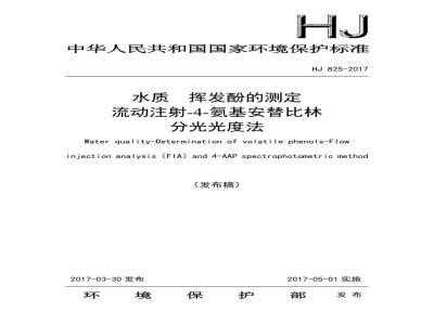 HJ 825-2017 水质 挥发酚的测定 流动注射4氨基安替比林分光光度法