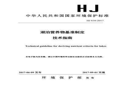 HJ 838-2017 湖泊营养物基准制定技术指南
