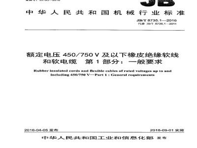 JB/T8735《额定电压450/750V及以下橡皮绝缘软线和软电缆》分为三个部分:第1部分:一般要求;