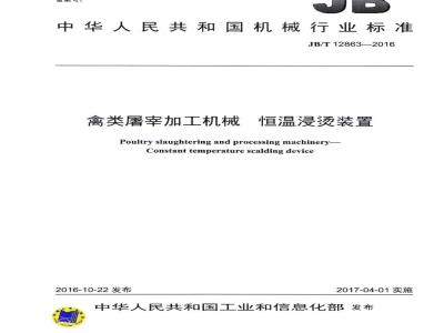 JB/T 12863-2016 禽类屠宰加工机械 恒温浸烫装置