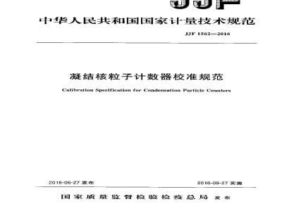 JJF 1562-2016 凝结核粒子计数器校准规范