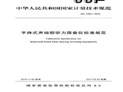 JJF 1581-2016 手持式声场型听力筛查仪校准规范
