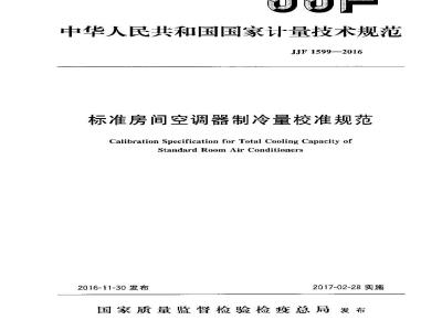 Calibration Specification for Total CoolingCapacity of Standard Room Air ConditionersJJF1599—2016