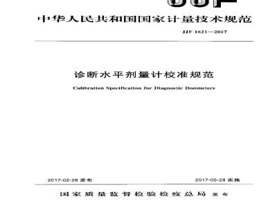 JJF 1621-2017 诊断水平剂量计校准规范