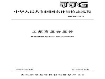 本规程适用于额定电压为1kV及以上的45Hz~55Hz高电压测量的电阻式、电容式、阻容式及电子式分压器的首次检定、后续检定和使用中检查。2引用文件
