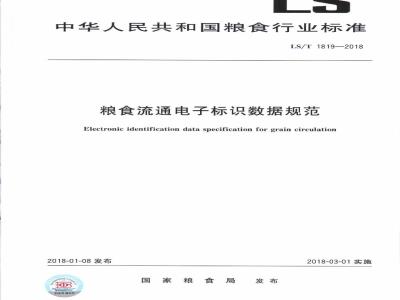 Electronic identification data specification for grain circulation2018-01-08发布