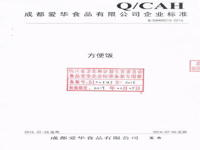 成都爱华食品有限公司企业标准Q/CAH0001S-2016