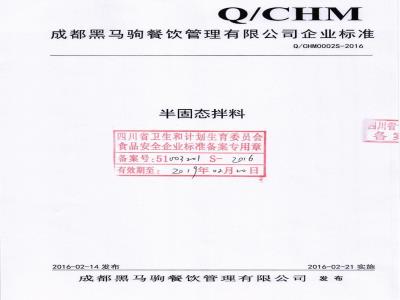 QCHM 0002 S-2016 成都黑马驹餐饮管理有限公司 半固态拌料